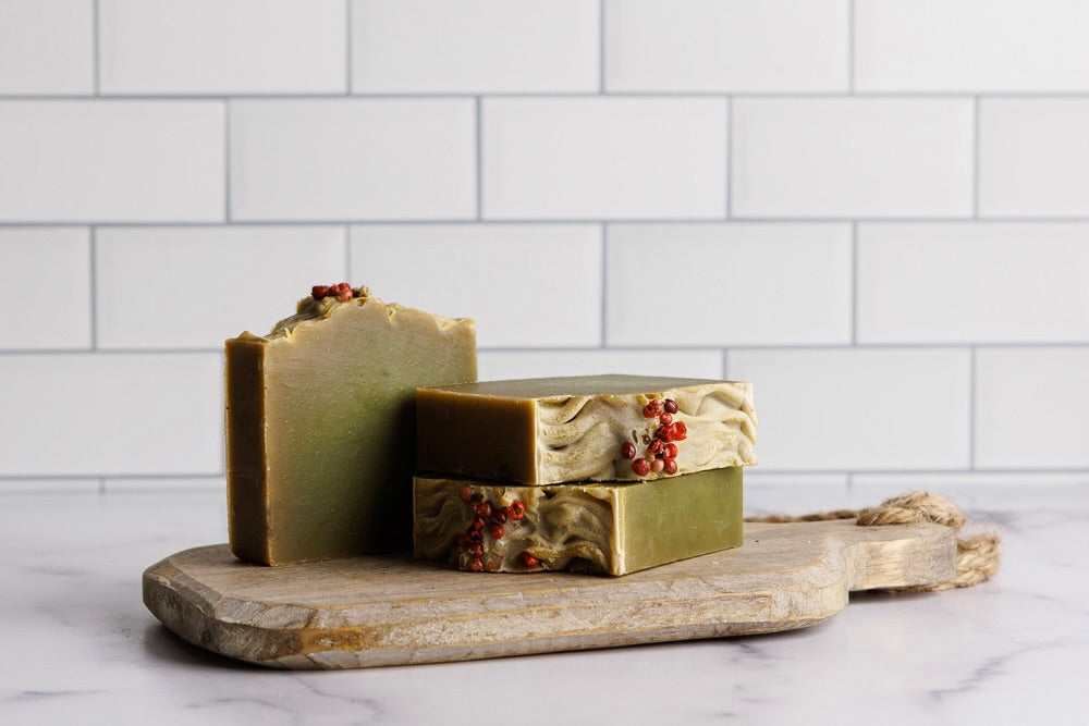 Finished with a sprinkle of red peppercorns for a festive touch, this creamy goat milk soap gently cleanses and nourishes, leaving your skin soft, smooth, and refreshed all season long