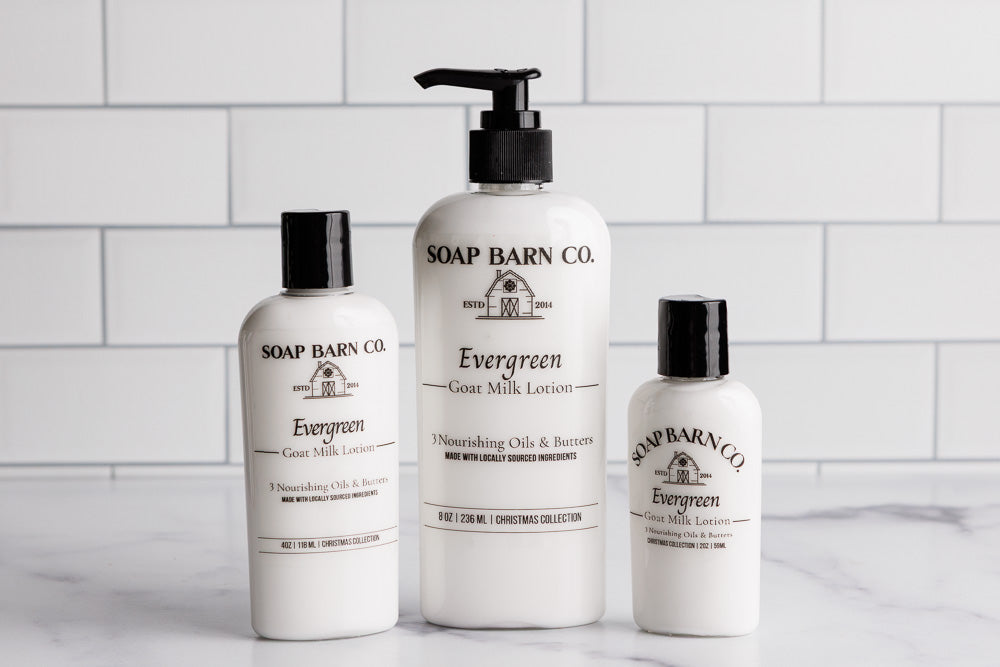 Wrap your skin in the refreshing scent of winter with our all-natural Evergreen Goat Milk Lotion. Crafted with fresh goat milk and a soothing blend of juniper berry and balsam fir essential oils, it deeply nourishes while enveloping your skin in a crisp, evergreen aroma. Rich oils and butters leave your skin soft, smooth, and hydrated without any greasy residue. The fresh, woodsy scent brings the tranquil beauty of a snowy forest into your daily skincare routine.